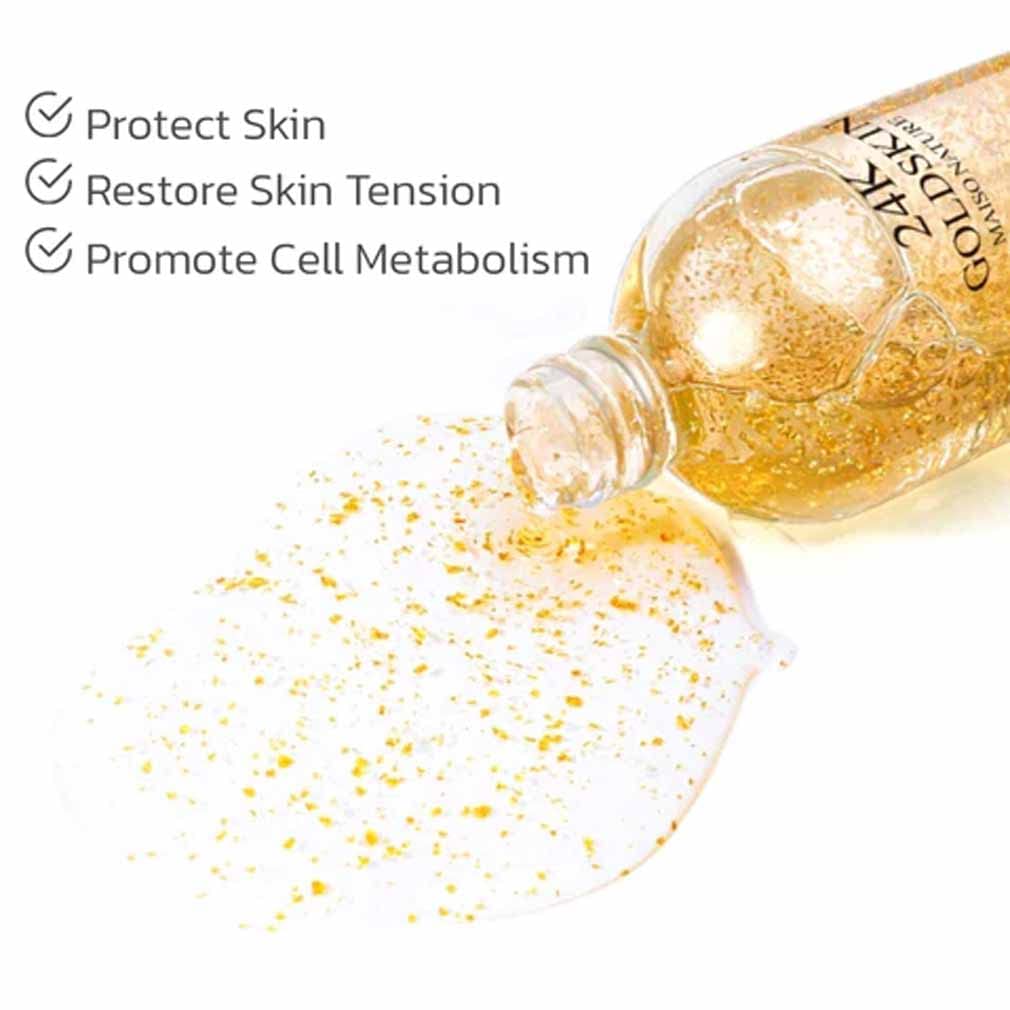 The 24K gold foil processed by using nanotechnology is a natural antioxidant, which is more easily absorbed by the skin. The anion released can reduce the free radicals, slow down aging, and enhance immunity.