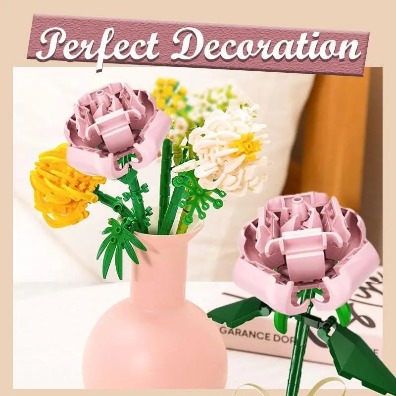DIY Home Decoration: This will be a long-lasting decorative display piece anywhere in the house or office that never fades. You can put wonderful thought into every stage of assembly. The flowers building bricks can be matched with bonsai tree or the other bouquet.