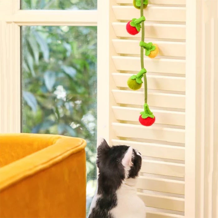 Tired of boring toys your cat ignores? This playful tomato string toy is packed with catnip and charm! Made to engage, entertain, and last through all the zoomies.