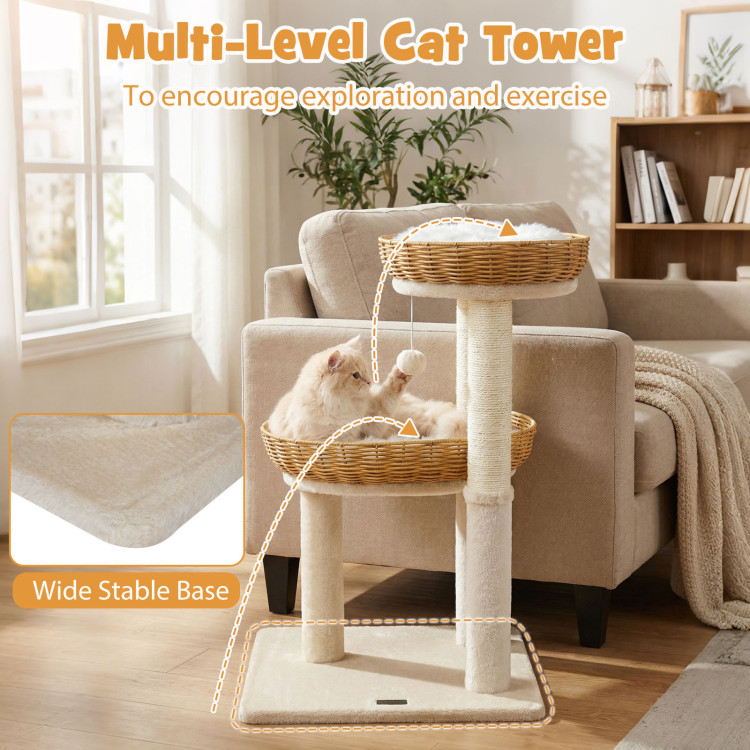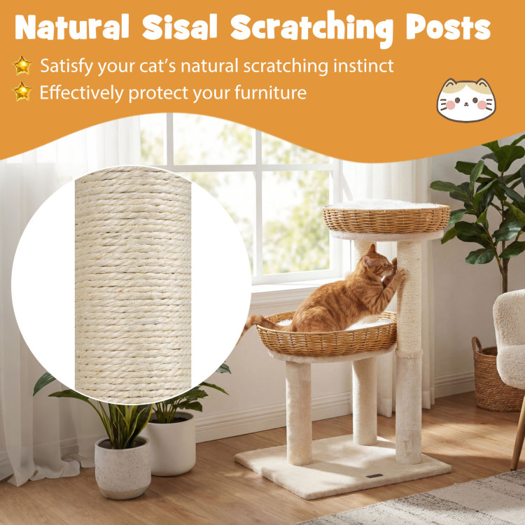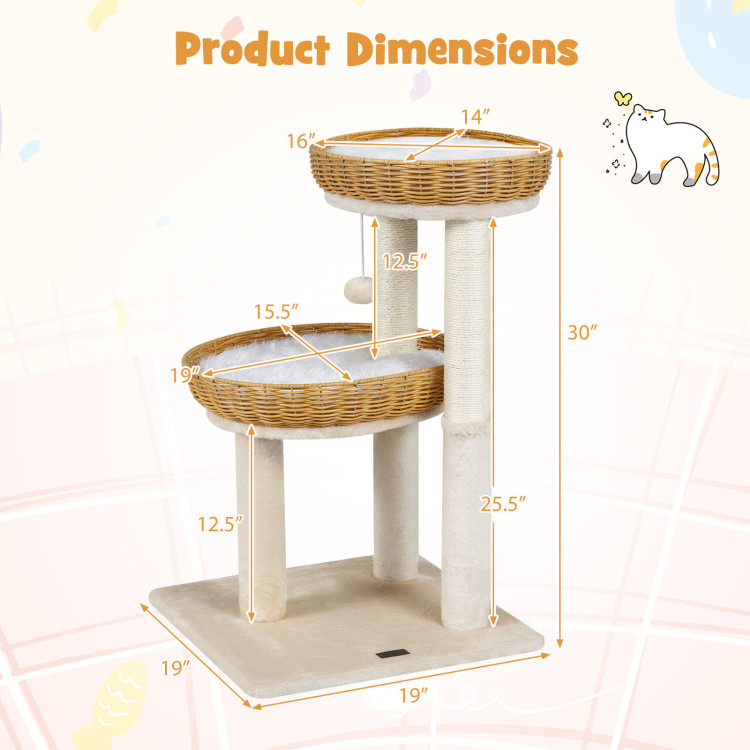 30-Inch Cat Tree With 2 Rattan Cat Baskets