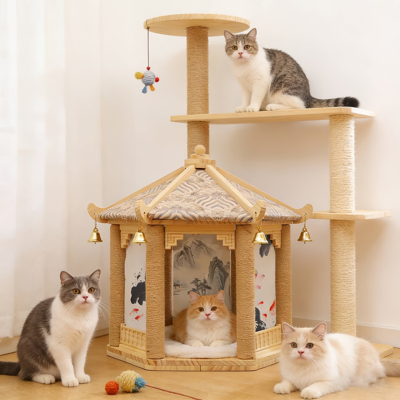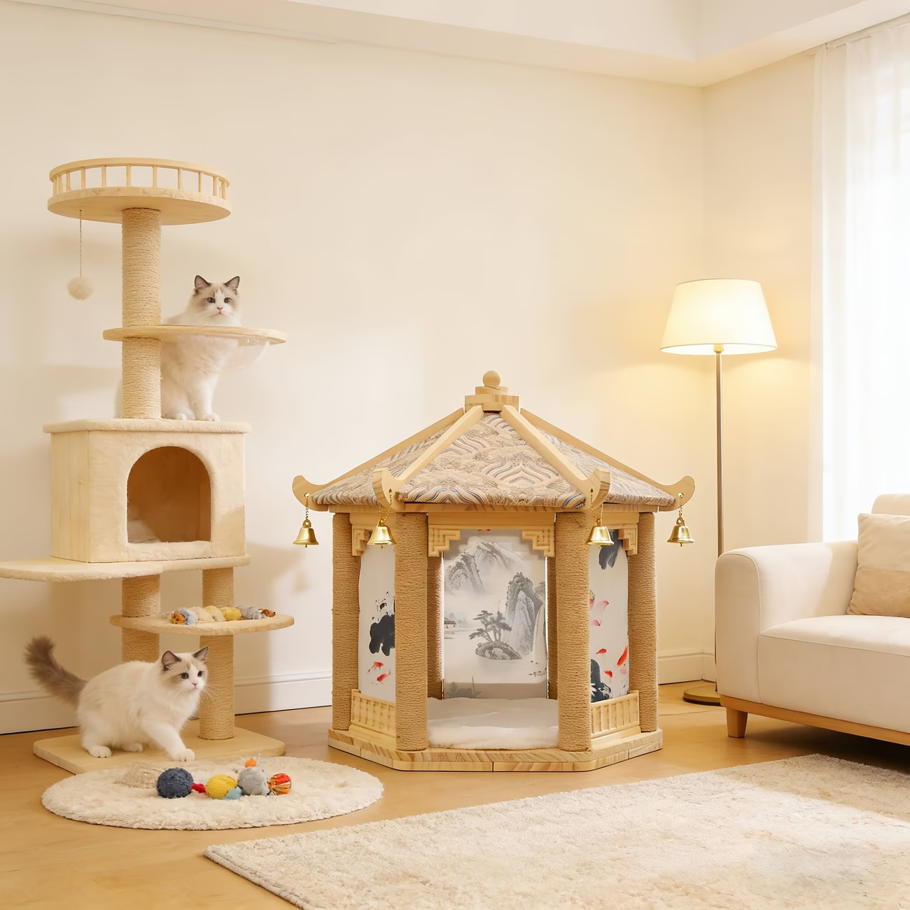 Engineered for the “multifunctional pet home,” this house seamlessly integrates durable sisal scratching posts into its sleek frame, satisfying natural scratching instincts while protecting your furniture.
