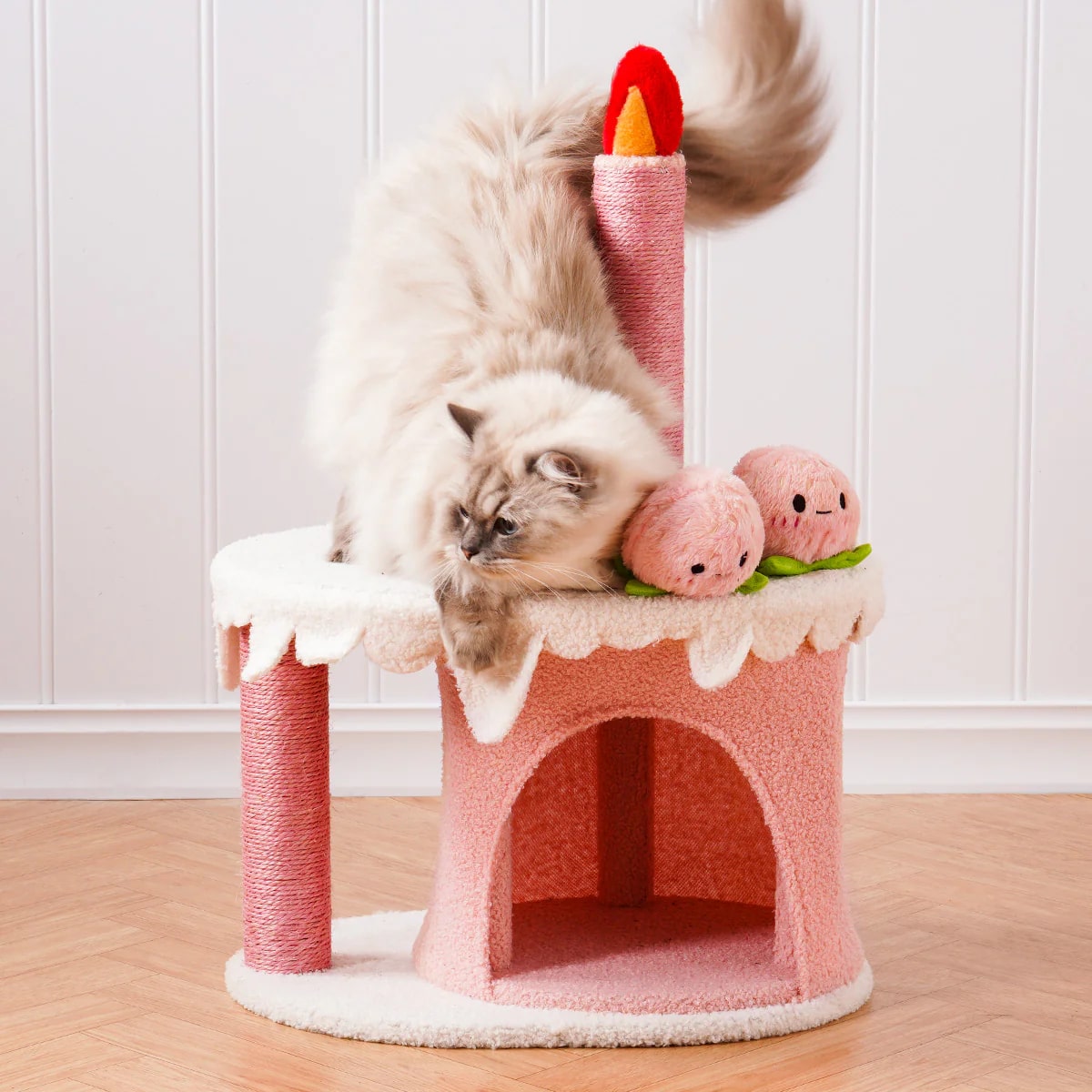 Strawberry Birthday Cake Cat Tree & Condo House With Squeaky Toys
