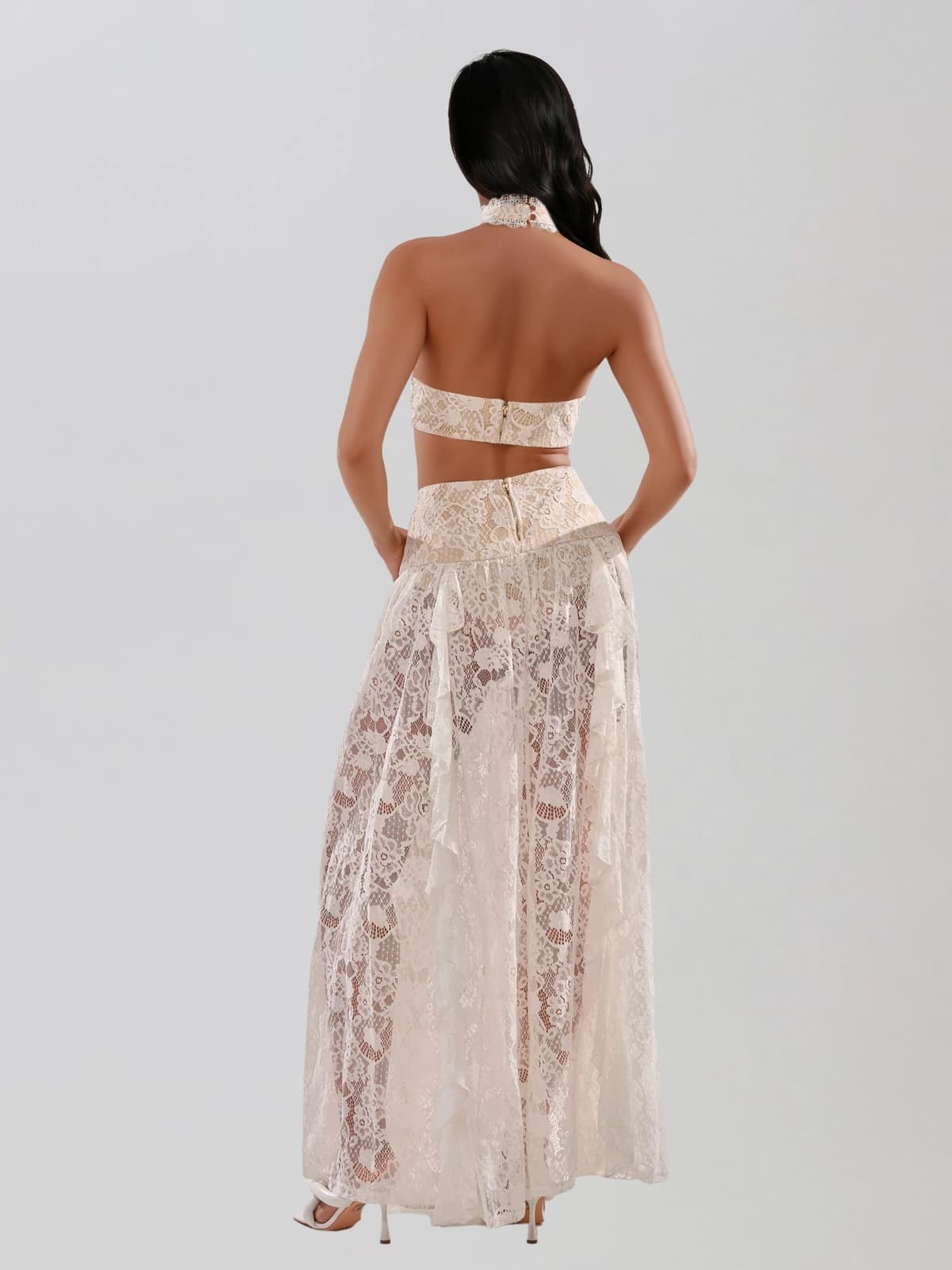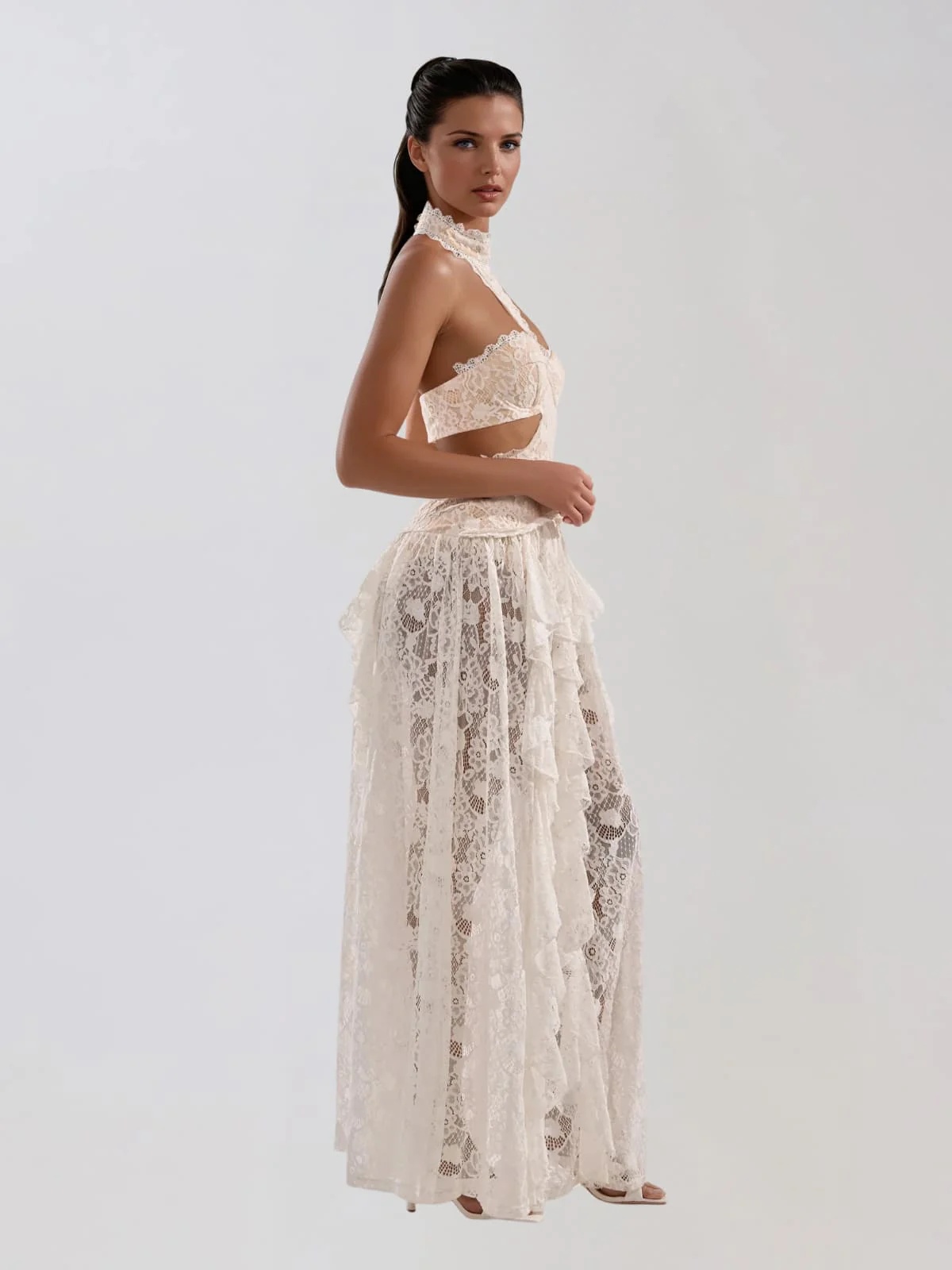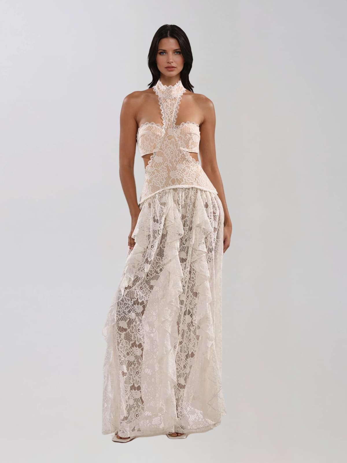 Gavelyn Halterneck Cutout Lace Maxi Dress In White
