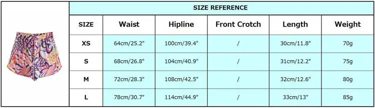 SIZE CHART: