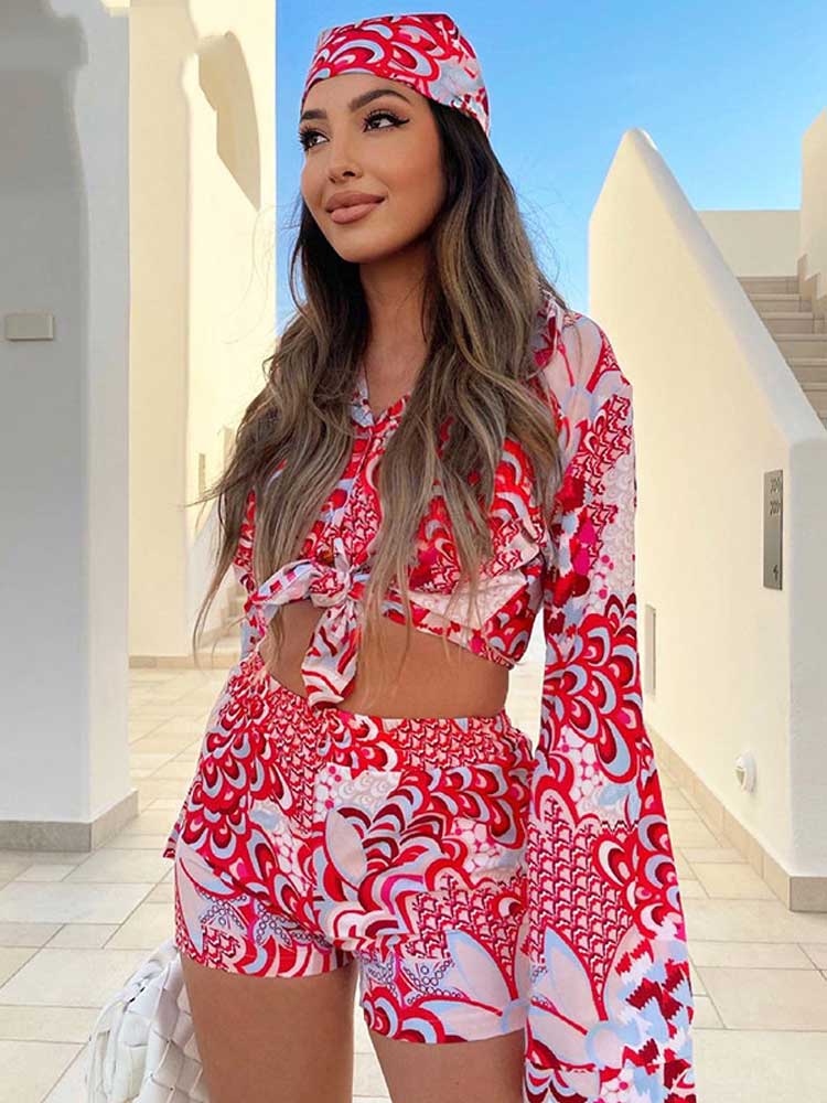 2022 NEW Women’s Summer Boho Casual Flower Print Three-Pieces Set