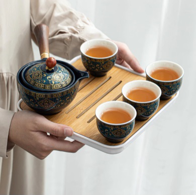 Based on the 1000-year-old pottery designs, 360° Rotation Tea Maker aesthetics holds the essence of the far east in it! Every part of the set is handcrafted and carefully colored with techniques passed down to generations!