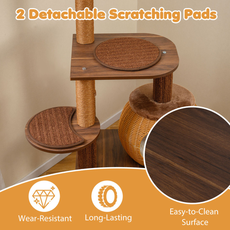 Multiple Scratching Areas: This cat tree features natural sisal scratching posts and comfortable plush posts, plus 2 detachable scratching pads on the platforms, giving cats multiple textures to scratch, stretch, and sharpen claws while helping protect your sofas, carpets and furniture.