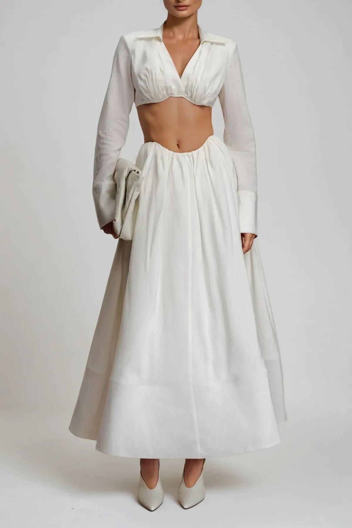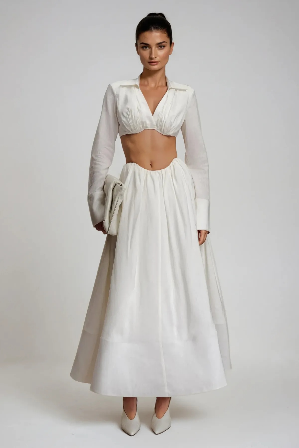 Elevate your wardrobe with the Diklah Long Sleeve Crop Skirt Set, a sophisticated two-piece ensemble designed for the modern woman. The fitted long-sleeve crop top provides structured support and a flattering silhouette, while the coordinating skirt offers versatile styling options for both casual and elevated occasions. Crafted with attention to detail, this set delivers polished elegance with effortless coordination. Perfect for layering or wearing as a complete look, the Diklah set combines contemporary design with timeless appeal.