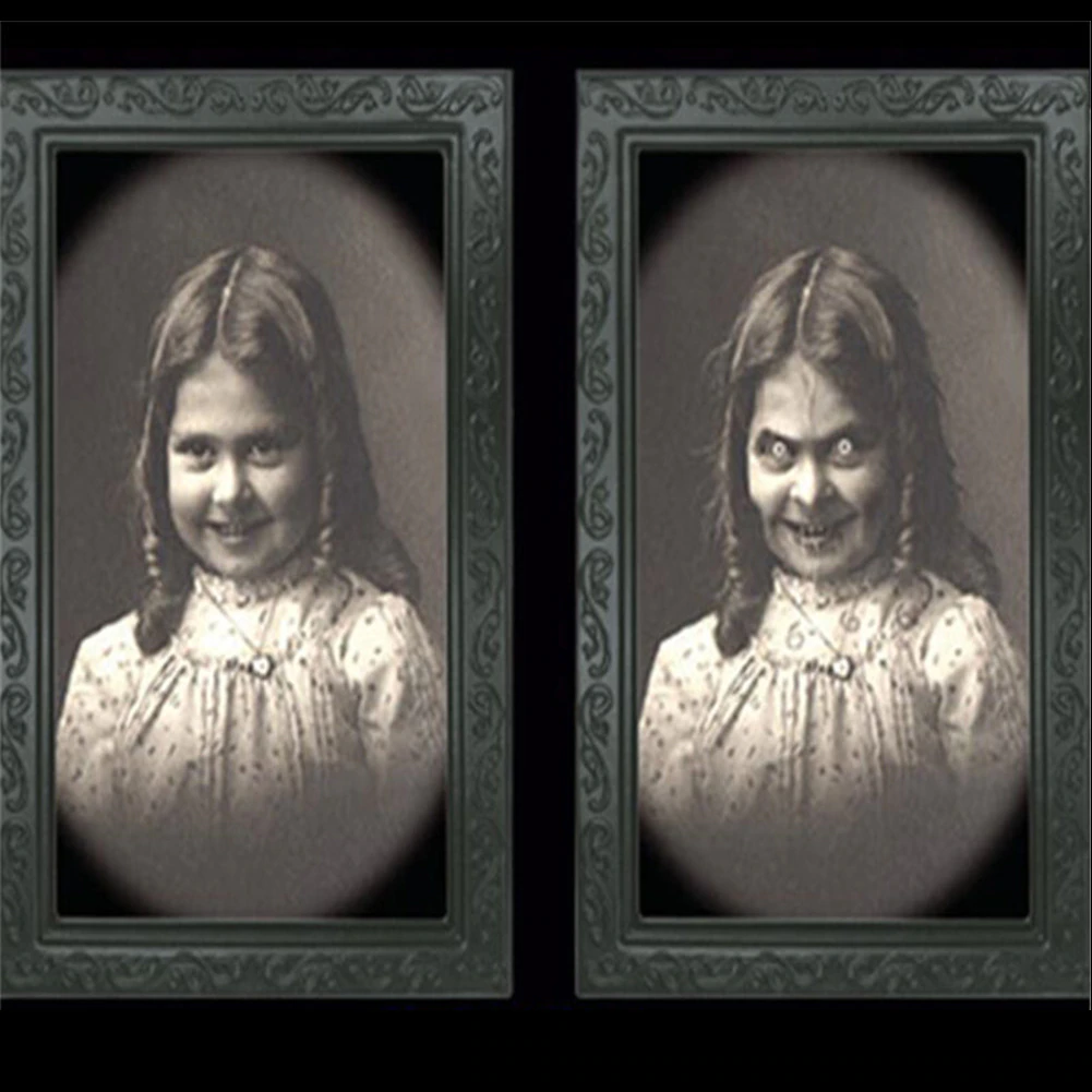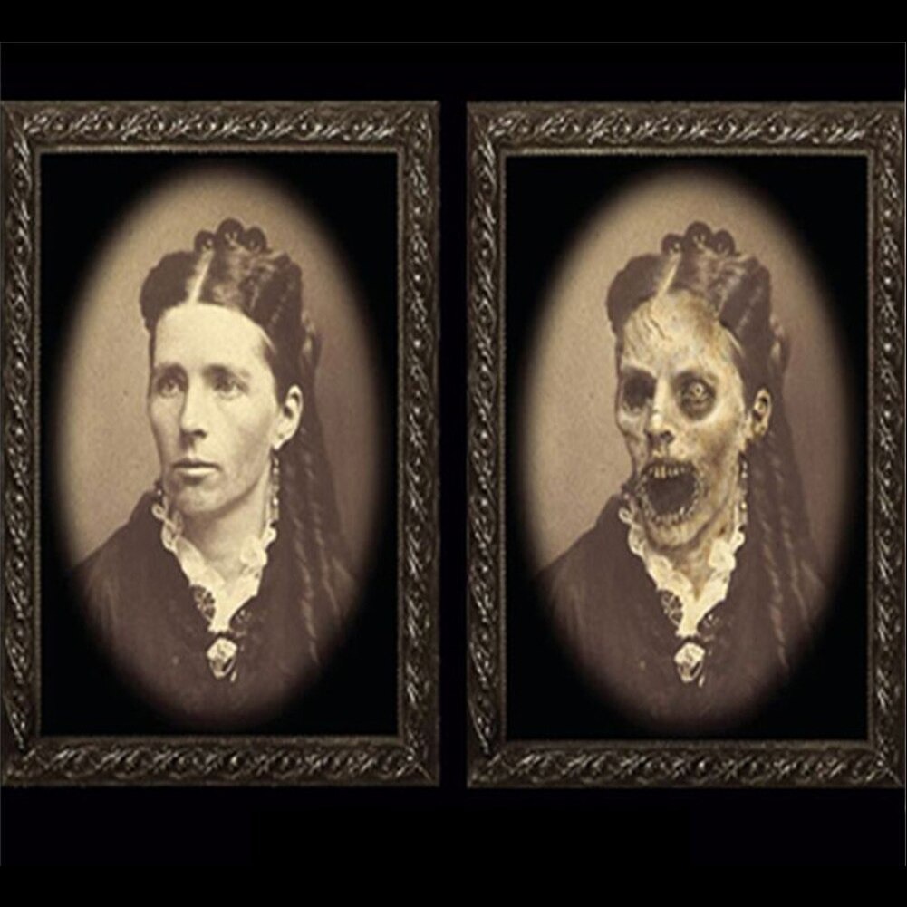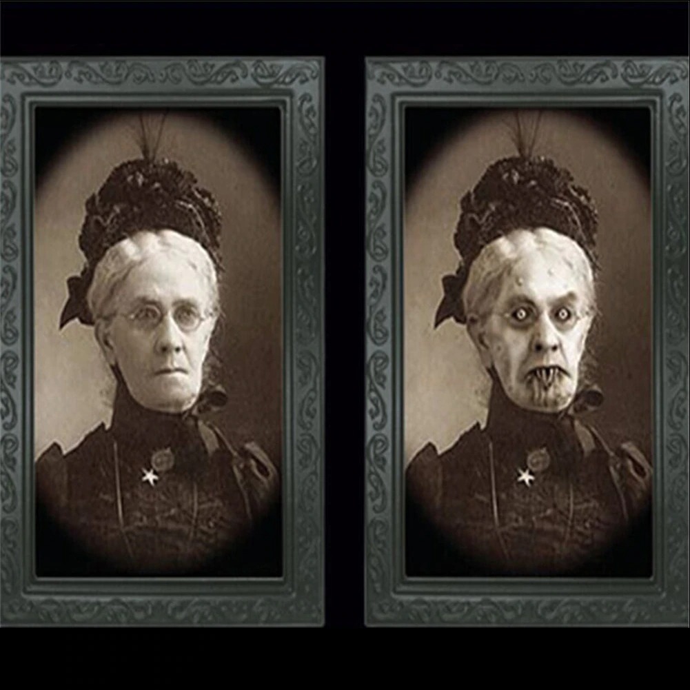 3D Changing Face Picture: The front view is a normal portrait, but with the change of position and angle, you will find its real secret–a horror photo hiding a ghostly figure, this kind of weird and terrible design will immerse people in the haunted atmosphere.