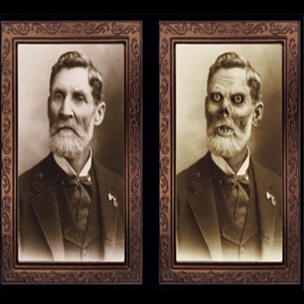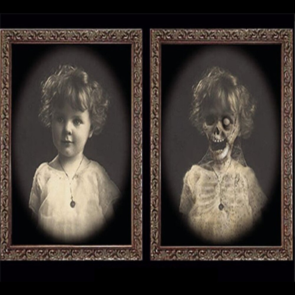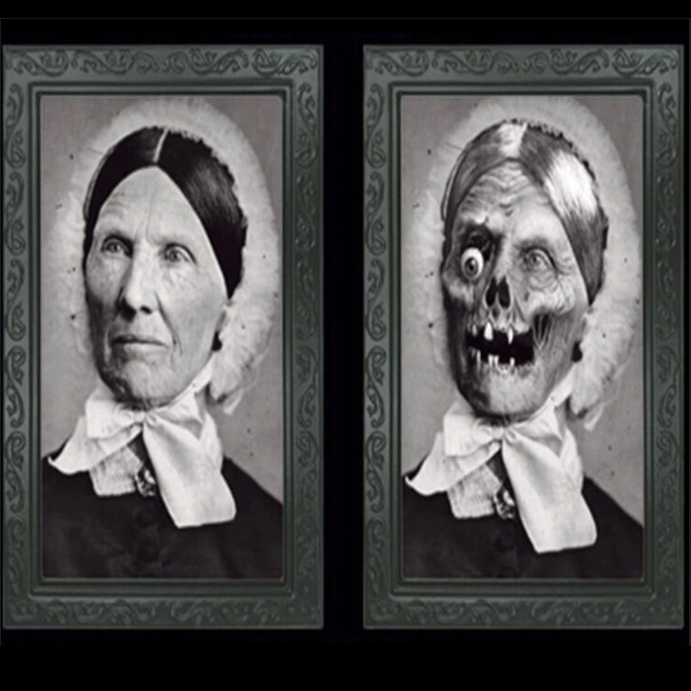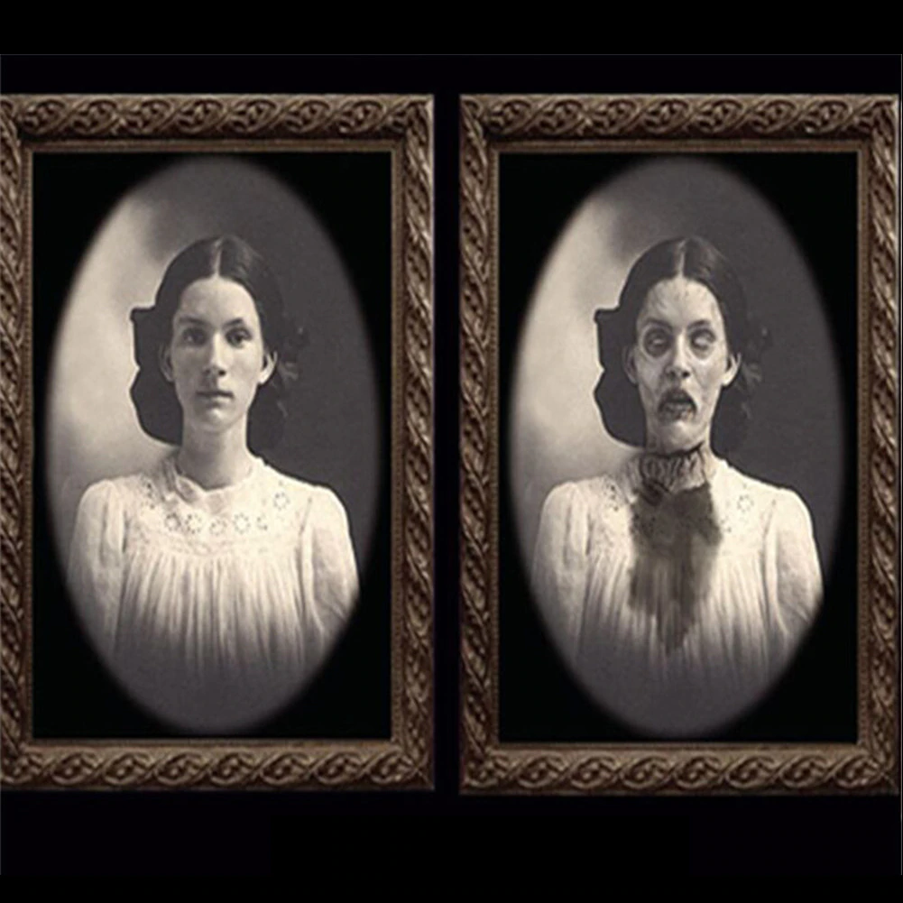 3D Changing Face Picture: The front view is a normal portrait, but with the change of position and angle, you will find its real secret–a horror photo hiding a ghostly figure, this kind of weird and terrible design will immerse people in the haunted atmosphere.