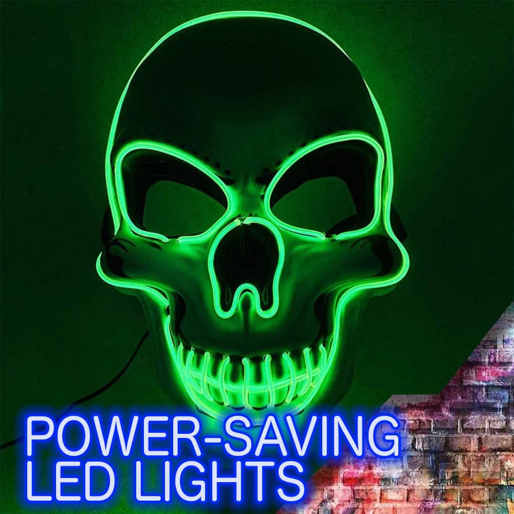Power-Saving LED Lights: This mask features power-saving LED lights with long battery consumption. Scare people all night long on Halloween!