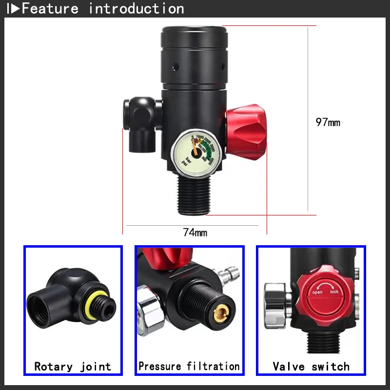 - The maximum filling pressure of this product is 3000PSI. Filling gas with oxygen content greater than 40% cannot be used. Please use clean and dry compressed air. Do not expose the product to an environment above 160 degrees Celsius or open flames.