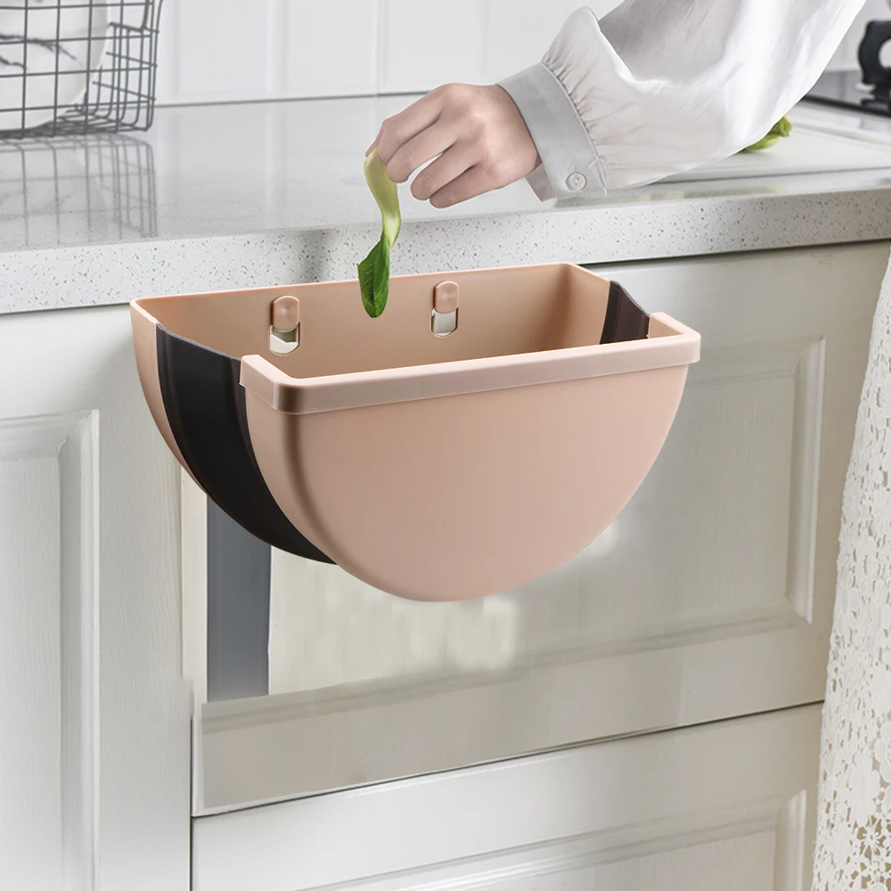 - A Must-Have for Kitchen: Easy to install, Just attach the compact folding trash can to any cabinet drawers or doors. When you cooking food, slicing and dicing things, you don’t need to open and close the cabinet door constantly with your wet hands, compared to the trash bin under the sink.